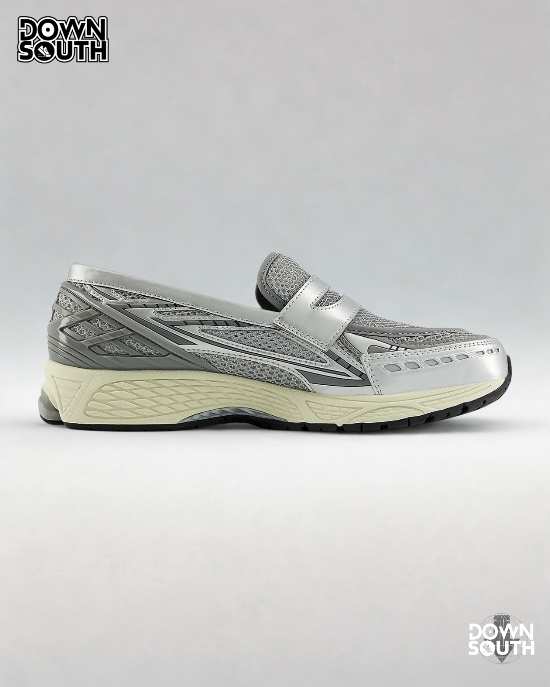 Seamlessly blending New Balance’s technical specs with the design requirements of a loafer, the Metallic Silver New Balance 1906L is lace-free. With N-ergy cushioning underfoot for shock absorption, the sneaker offers long-lasting comfort. The upper is crafted from a loose weave mesh that ensures durability, while the metallic silver accents draw attention to the supportive overlays. Although the sneaker doesn’t need laces, a traditional loafer apron crosses the tongue. It features a silver metallic sheen that matches the collar.
